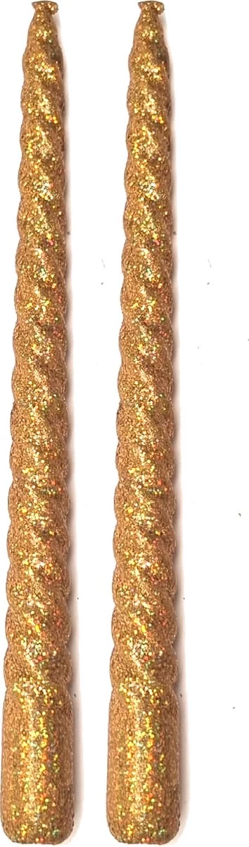 2 gouden glitter swirl dinerkaarsen 26 cm.