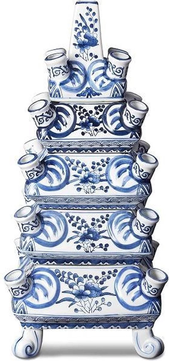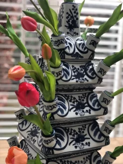 Deze tulpenvaas bestaat uit 5 lagen die op elkaar een beeldschoon tafelstuk vormen. De tulpenvaas is uiteraard geschikt voor tulpen maar ook met allerlei andere bloemen prachtig en zelfs zonder bloemen is deze tulpenvaas een bijzonder pronkstuk.