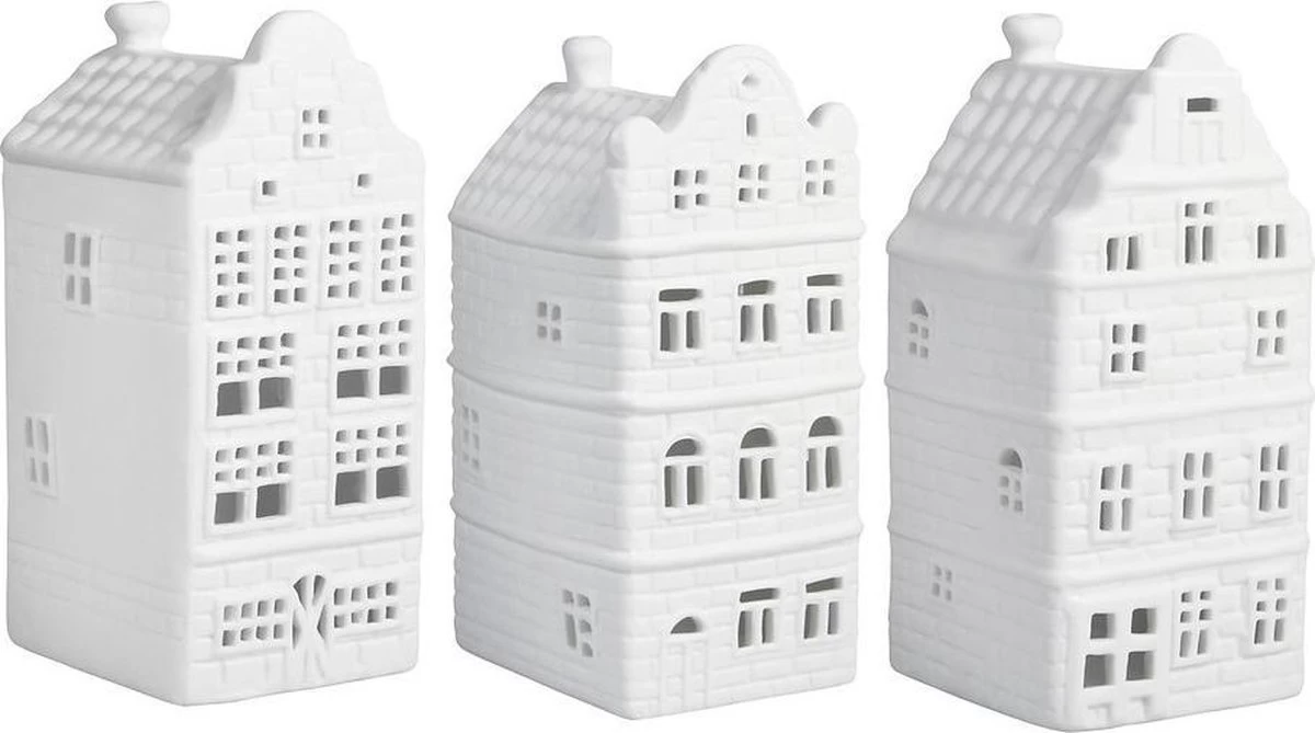 - Verpakking: wit geschenkdoosje – per grachtenhuisje los verpakt