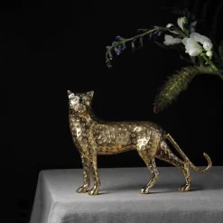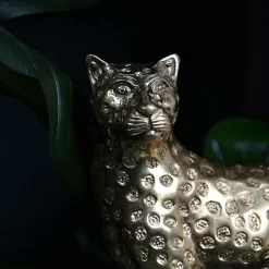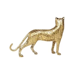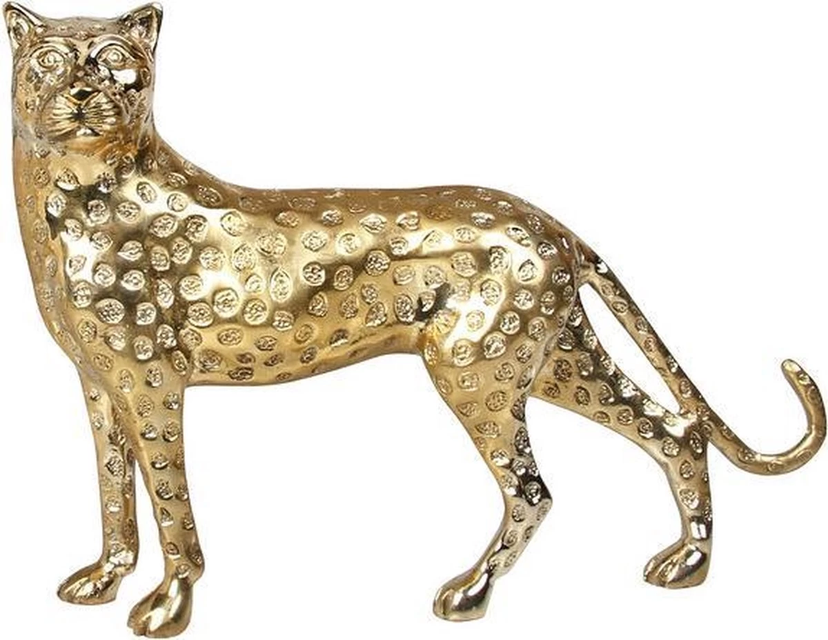 Een prachtig gouden beeld van een wilde panter. Dit kan perfect dienen als centerpiece in jouw woonkamer. Dit zware beeldje is van middelgroot formaat en heeft een goudkleurige coating. Door het gewicht van het beeldje voelt deze stevig aan en blijft altijd mooi rechtop staan.