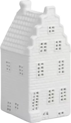 Dit waxinelichthouder huisje ‘Trapgevel’ is geïnspireerd door de bekende typisch Nederlandse grachtenpanden en grachtenhuisjes. Het kaarslicht schijnt sfeervol door de ramen van de typisch Nederlandse trapgvel. Dit witte grachtenhuisje past in ieder interieur, in elke ruimte is er wel een plekje voor deze waxinelichthouder. Uitstekend cadeautje ook!