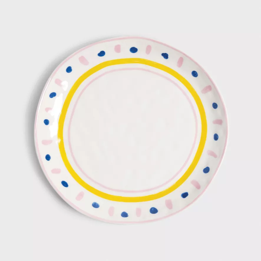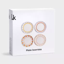 De Boavista dinerbord Ø21,5 set van 4 van &Klevering bestaat uit verschillende borden met elk een diameter van 21,5 centimeter en een hoogte van 2,5 centimeter. De dinerborden zijn gemaakt van porselein en hebben elk een andere print in dezelfde kleurstelling. De kleurrijke borden zijn vaatwasser bestendig, maar kunnen niet in de magnetron worden gebruikt.