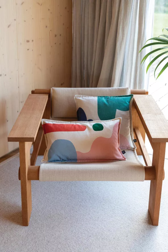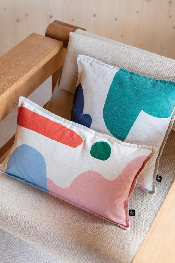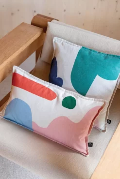 Het Collage kussen 30×50 van &klevering heeft een natuurlijk gekleurde ondergrond met abstracte vormen erop in het oranje, roze, blauw en groen. Het kussen heeft een lengte van 50 centimeter en een breedte van 30 centimeter. Het rechthoekige kussen is gemaakt van 100% katoen. &klevering adviseert het kussen alleen chemisch te reinigen. Let op! Het kussen wordt geleverd zonder vulling.