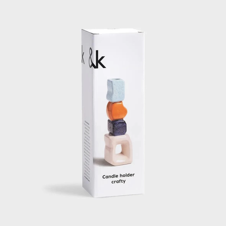De Crafty kandelaar medium van &klevering heeft een lengte van 5,5 centimeter, een breedte van 4,5 centimeter en een hoogte van 19,5 centimeter. De kandelaar is gemaakt van keramiek en heeft verschillende kleuren, namelijk blauw, roze en oranje. Je kunt de kandelaar schoonmaken met een vochtige doek.