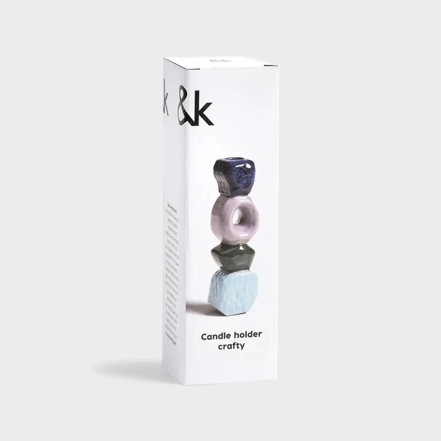De Crafty kandelaar small van &klevering heeft een lengte van 4 centimeter, een breedte van 4 centimeter en een hoogte van 16,5 centimeter. De kandelaar is gemaakt van keramiek en heeft verschillende kleuren, namelijk blauw, roze en oranje. Je kunt de kandelaar schoonmaken met een vochtige doek.