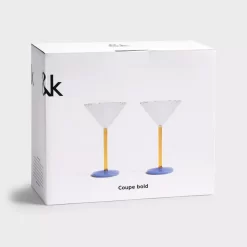 De Coupe champagneglazen set van 2 van &Klevering hebben elk een diameter van 10 centimeter, een hoogte van 17 centimeter en een inhoud van 0,15 liter. De glazen zijn gemaakt van glas. De Coupe champagneglazen set is verkrijgbaar in verschillende kleuren met elk een andere voet. De glazen zijn vaatwasser bestendig.