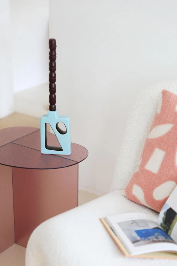 De Flush kandelaar blauw van &klevering heeft een lengte van 10,5 centimeter, een breedte van 3,5 centimeter en een hoogte van 16,5 centimeter. De kandelaar is gemaakt van aardewerk en weegt 0,38 kilo. &klevering raadt aan de kandelaar te reinigen met een vochtige doek.
