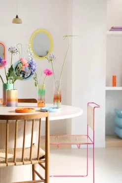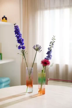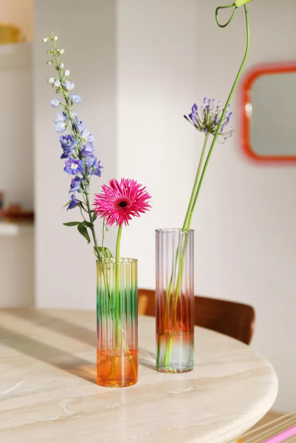 De Gradient vaas large van &klevering heeft een hoogte van 29 centimeter en een diameter van 8 centimeter. De vaas is gemaakt van glas en weegt 0,36 kilo. &klevering raadt aan om de vaas te reinigen in lauwwarm water.