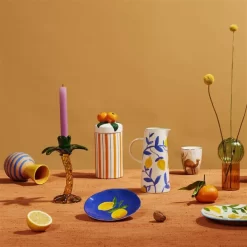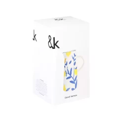 De Lemon Twig karaf 0,75L van &Klevering is een witte waterkan met een blauwe met gele citroen print. De karaf heeft een lengte van 14 centimeter, een breedte van 9,5 centimeter, een hoogte van 20,5 centimeter en een inhoud van 0,75 liter. De waterkan is gemaakt van keramiek en is vaatwasser bestendig.
