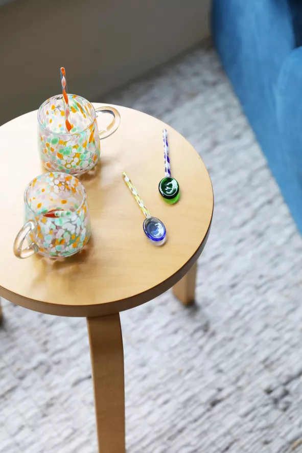 De Stipple mok 0,25L set van 2 van &klevering bestaat uit een set van 2 mokken. De mokken hebben elk een lengte van 11,5 centimeter, een breedte van 8 centimeter en een hoogte van 9 centimeter. De mokken hebben elk een inhoud van 0,25 liter. De mokken zijn gemaakt van glas en wegen 0,6 kilo per stuk. De mokken kunnen in de vaatwasser en zijn verkrijgbaar in verschillende kleurvariaties.