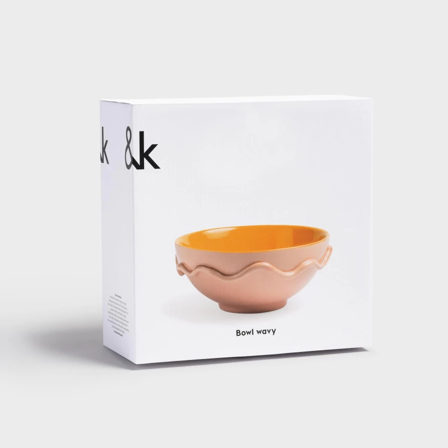 De Wavy schaal roze van &klevering heeft een diameter van 9,5 centimeter en een hoogte van 23,5 centimeter. De schaal is gemaakt van dolomiet, afwerkt in een roze kleur met van een patroon van golvende lijnen. Je kunt de schaal schoonmaken door hem te spoelen met lauwwarm water.