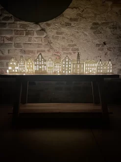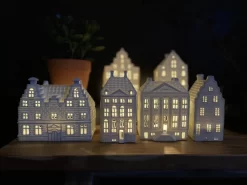 Het kaarslicht schijnt sfeervol door de vele ramen van deze waxinelichthouder. Uit deze collectie zijn ook nog andere waxcinehuisjes verkrijgbaar, zo is het mogelijk een straatje te maken.