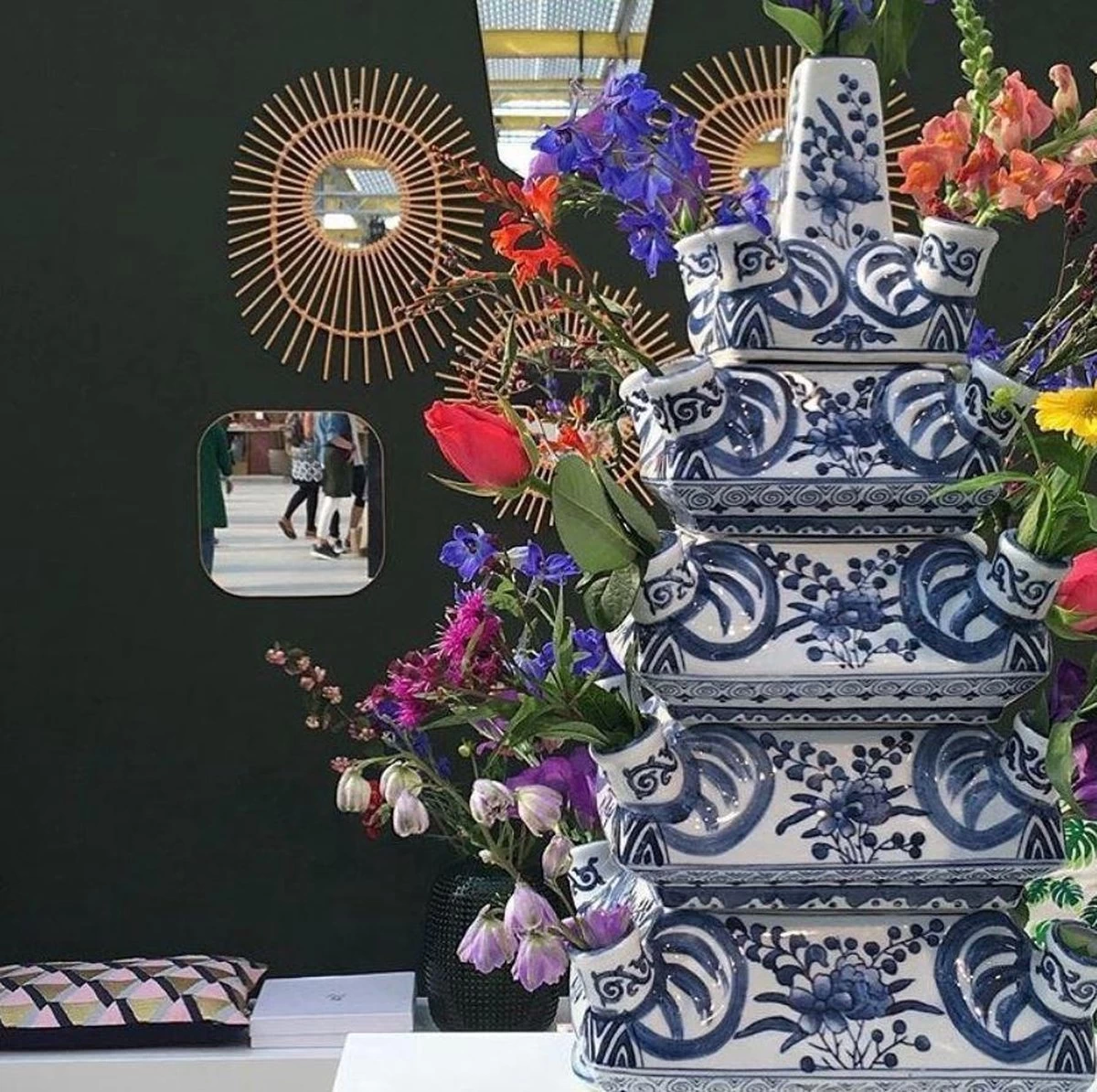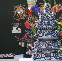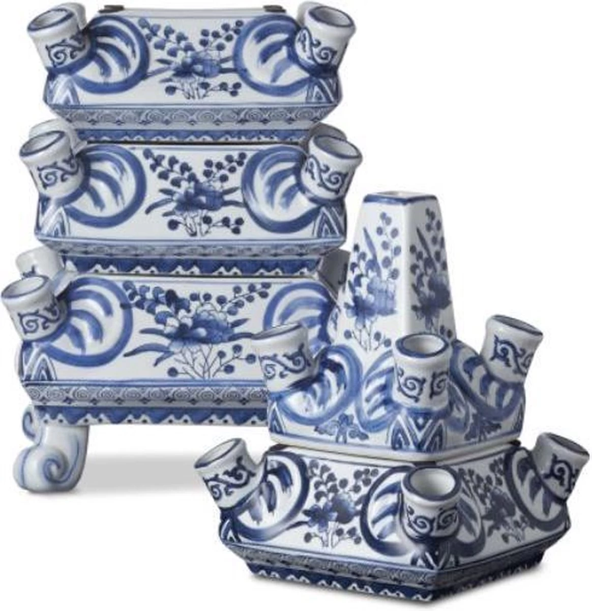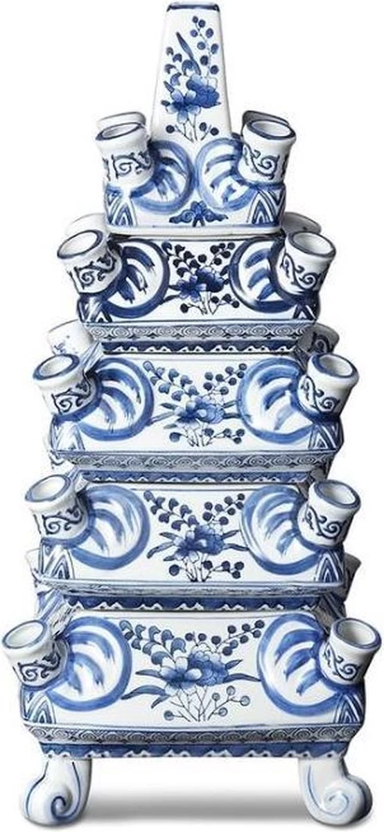 Deze Delfts blauwe Rijksmuseum Tulpenvaas is geïnspireerd op een Delftse tulpenvaas piramide van rond 1700, de periode dat de tulpen nog onbetaalbaar waren en een echt statussymbool.
