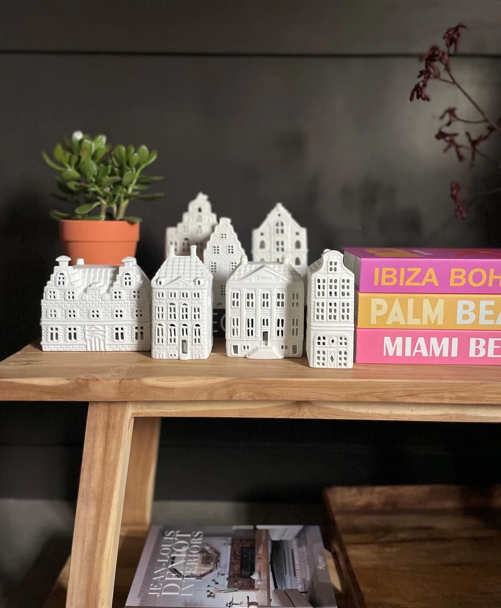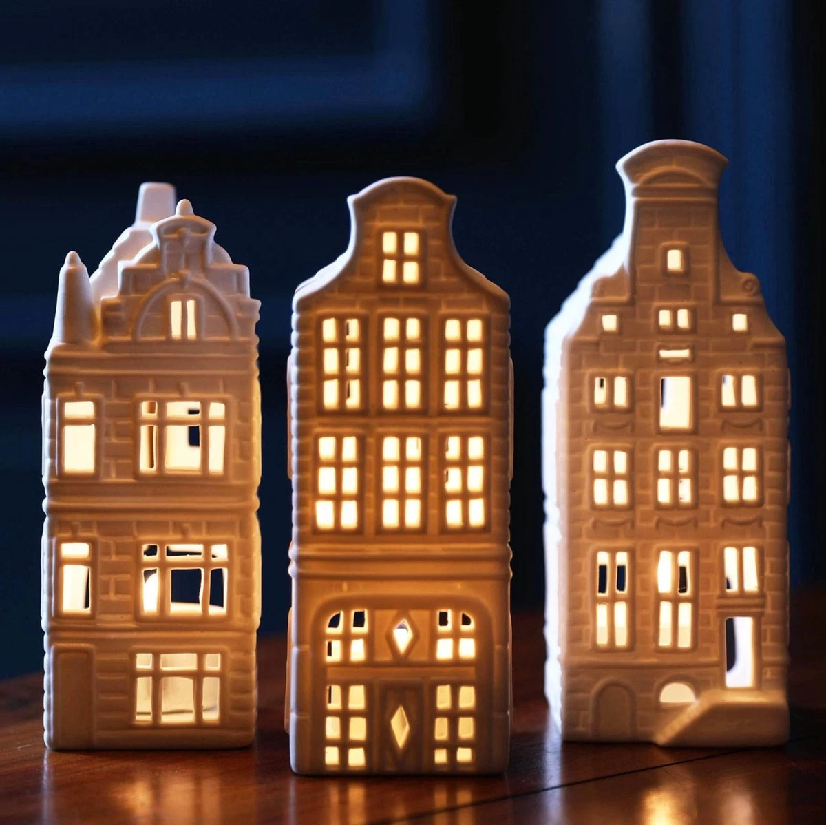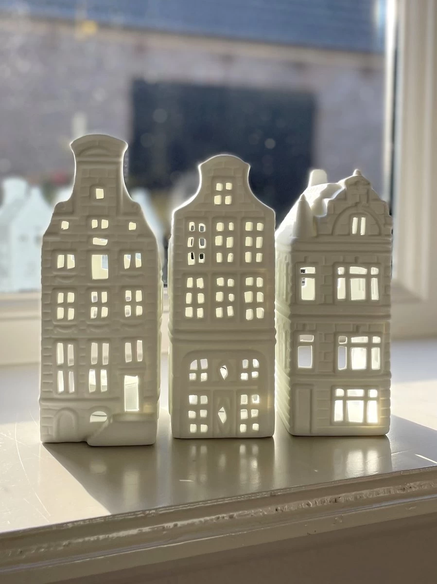 Mooie set waxinelichthouders van het Nederlandse merk &Klevering, set van 3 stuks, in de sfeer van de bekende grachtenpandjes.